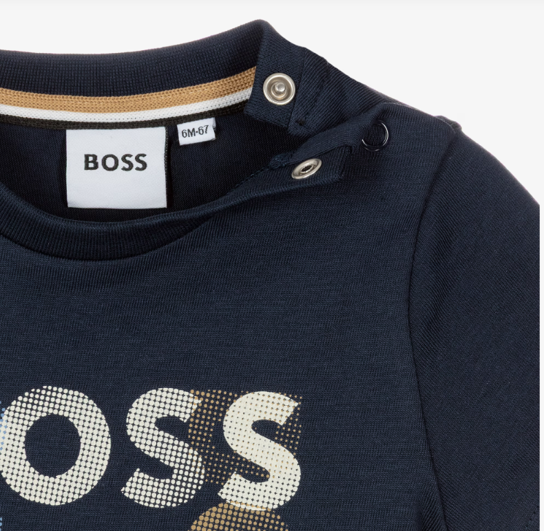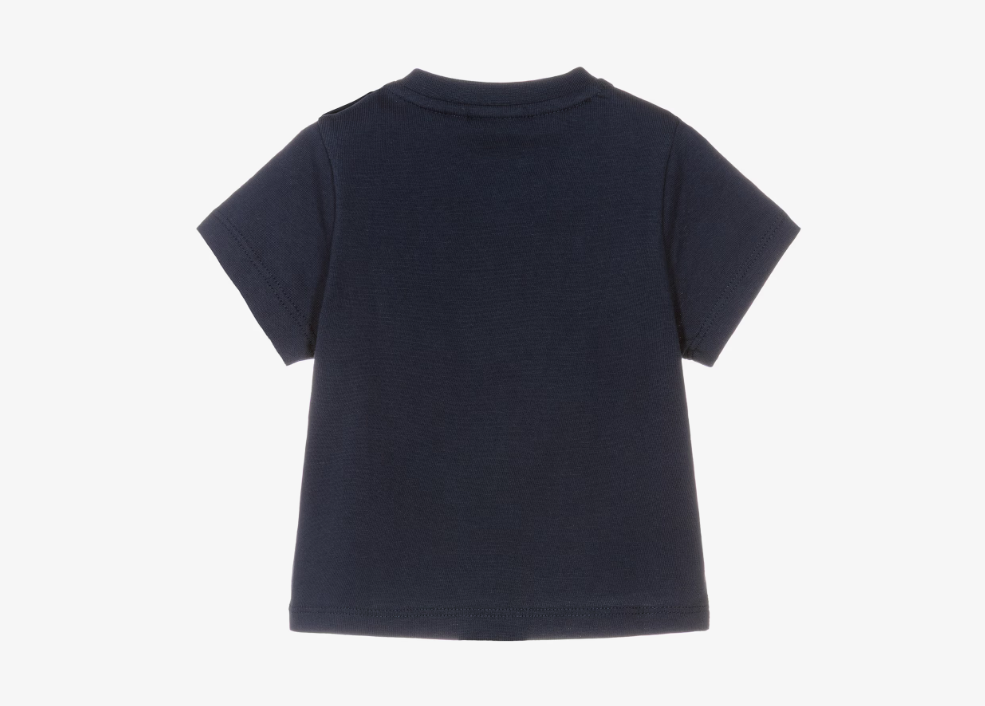 Navy blue T-shirt for little boys by BOSS, made in soft cotton jersey. Casual and comfortable, it has a cool square logo design on the front and popper fastenings on one shoulder for easy dressing.