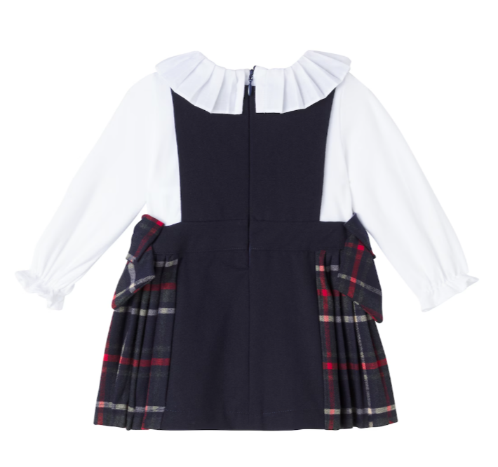 This Patachou dress is accented with timeless tartan ribbons, making it a charming choice for your little one. The sweet design features a pleated collar, contrasting white long sleeves finished with ruffled cuffs, and a concealed zip closure.