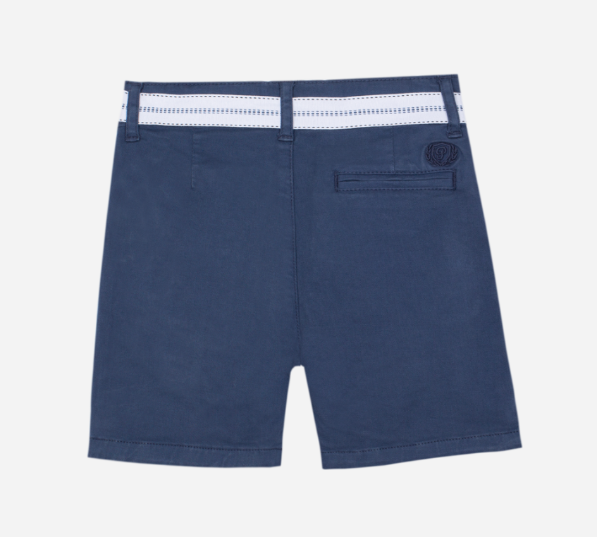 These navy blue shorts for boys are made from cotton with a small percentage of elastane for added comfort and flexibility. They feature an elegant white belt that adds a stylish and functional touch. Perfect for casual occasions and summer days.