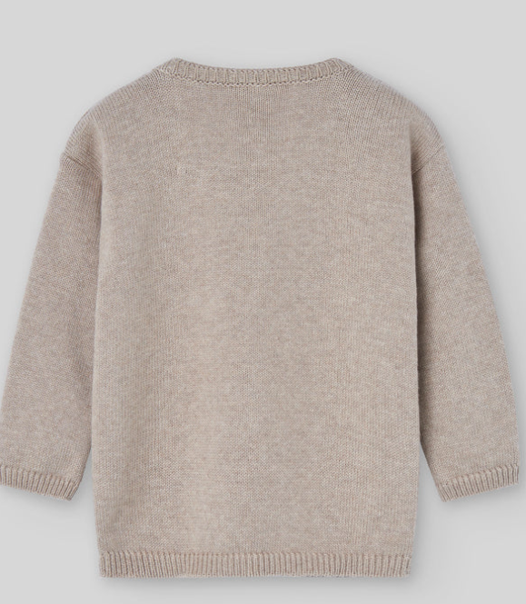 Basic plain knit sweater in cotton and cashmere with an embroidered front design and soft lining.